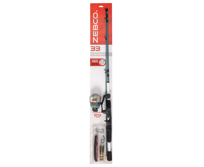 Amp up your next fishing adventure with Zebco’s 33 Custom-Z spincast combo with Strike King® tackle kit. The reel is crafted with strong all metal gears, a MicroFine™ dial-adjustable drag for steady drag power, and conveniently comes pre-spooled with 10 lb. Zebco line. The durable 6’6” medium power fiberglass rod features a split-grip EVA handle for hours of comfort. This set up is ideal for targeting bass and walleye.